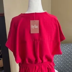 🆕 Chic iyla Coral/Red V-Neck Dress, NWT, Size XL