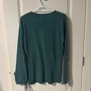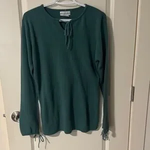 Chic teal top with stylish tie accents. Ideal for versatile wear.