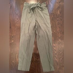 Stylish olive green pants with a tie waist. Perfect for casual or dressy occasions.