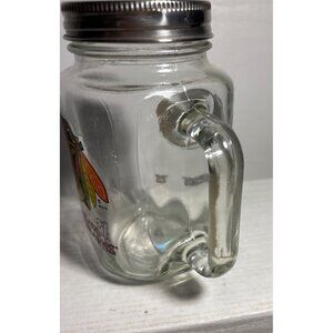 Chicago Blackhawks Glass Mason Jar Mug With Handle & Metal Lid 6" Tall
