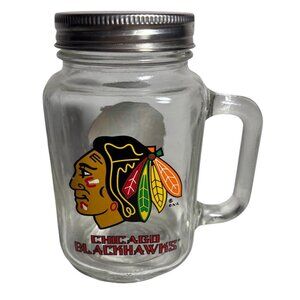 This glass mason jar mug combines functionality with fandom, featuring the Chicago Blackhawks logo and durable construction, ideal for beverages or as collectible decor.