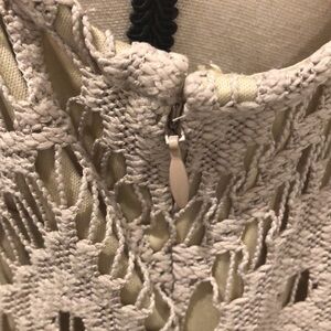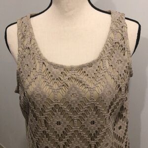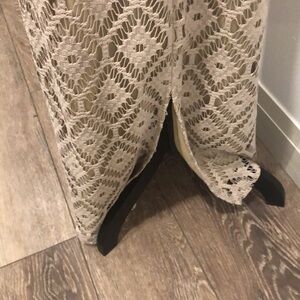 Chico gold maxi macramé dress zip side sleeveless SZ 2 side slit Vintage gown