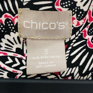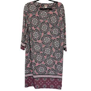 Chico's 3 Shift Dress Womens 16/18 Pink Black Floral Geometric Long Sleeve Art