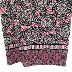 Chico's 3 Shift Dress Womens 16/18 Pink Black Floral Geometric Long Sleeve Art