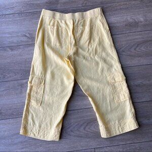 Chico’s Baby Yellow Pure Linen Cargo Cropped Pants