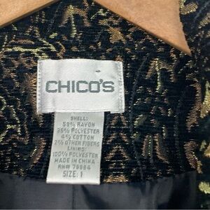 Chico’s Baroque Brocade Tapestry Blazer Jacket Gold Black Sz 1 / Medium