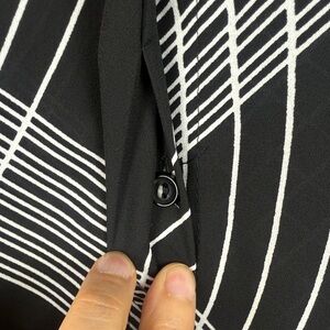 Chico's Black Button Up Asymmetrical Rosalind Graphic Grid Shirt Size 2 Blouse