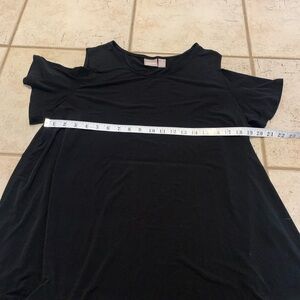 This Chico's cold shoulder top is a versatile and stylish addition to any wardrobe. Made in South Korea, this top is a size 2 (which is equivalent to a US size L/12). The soft, black fabric drapes beautifully, and the cold shoulder cut-outs add a touch of modern flair.