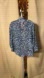 Elegant sheer blouse with a blue pattern. Features a button-up front and classic collar.