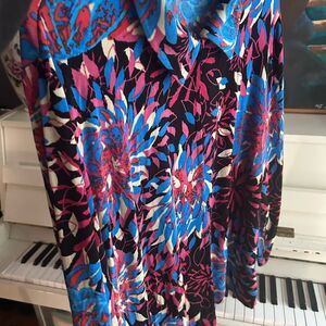 Striking floral pattern with bold colors. Ideal for a stylish look. Tag says size 3. See measurements.