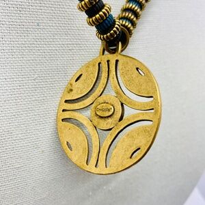 Chico's Bronze and Blue Swarovski Crystal Medallion Necklace