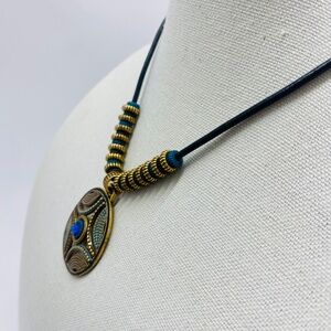 Excellent, like new condition. Vintage from the 90's. Medallion measures 2" in diameter and the leather cord is 20" long including the extender.