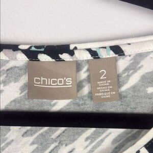 Chico's Cotton Blend Black and White Graphic 3/4 Sleeve Blouse Size 2