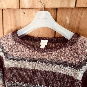 Chico’s Cozy Striped 3/4 Sleeves Multicolor Soft Fall Brown Sequins Sweater 0