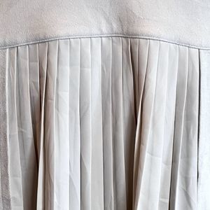 Fabric feels like a suede without the weight. Great over a black top and pants! Perfect for the office or travel!