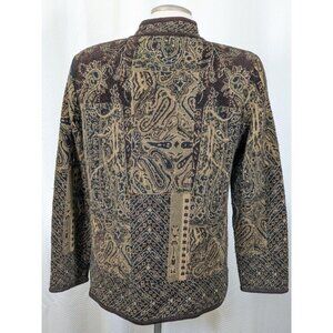 Chicos Design Womens S Wool Blend Cardigan Sweater Jacket Brown Paisley Button
