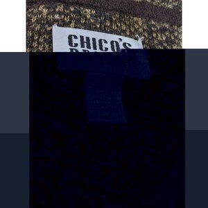 Wrap yourself in timeless elegance with the Chico's Design Women's Cardigan. This wool blend sweater features a sophisticated brown paisley pattern, long sleeves, and a classic collared neckline. The cardigan is adorned with beautifully embellished buttons, adding a touch of whimsy to this knit piece.Crafted with a luxurious blend of acrylic, rayon, and wool, this sweater promises both warmth and comfort. Perfect for the cooler months, it's a versatile addition to your wardrobe, easily paired with your favorite jeans or skirt. The size small fits regularly, ensuring a flattering and cozy fit.