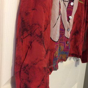Sheer 100% Silk (doesn't feel soft to touch but is light.)
