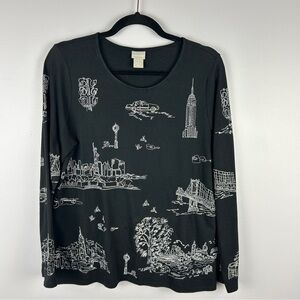 Chico's Embroidered Scenic Long Sleeve Cotton Modal Tee Medium Black