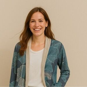 Chico’s Flowing Petals Lightweight Open Front Mermaid Print Jacket Size Small