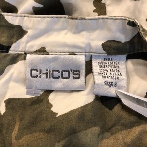 Chico’s (G) camo floral button down shirt size 3 (L) long sleeve with needl…