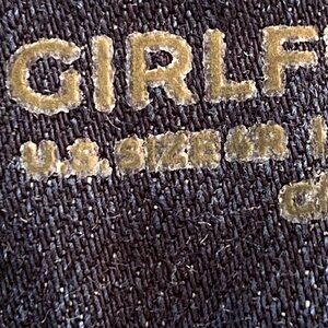 Chico's So Slimming Girlfriend Slim Leg Ankle Jeans. Women's tag size: Chico's size 0 / regular size 4 (actual measurements in photos). Cotton / rayon / polyester / spandex blend. Lots of side to side stretch. Dark wash blue (some photos lightened to show detail). Mid Rise.