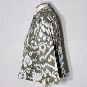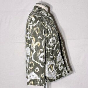 Chico’s Green Yellow Graphic Print Open Front Light Jacket XL