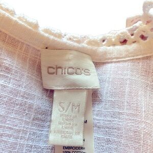 Chico’s Ladies Sleeveless White Gauzy Cotton/Lace/Embroidered Cardigan- Size S/M