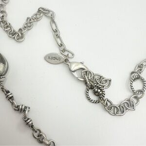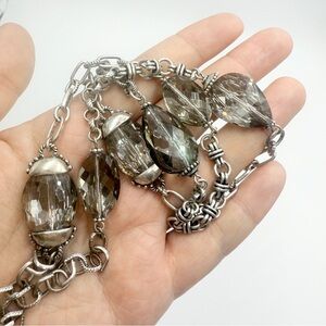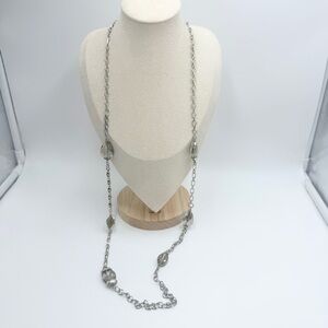 Chico’s Long Elegant Silver Chain Necklace with Large Clear Beads
