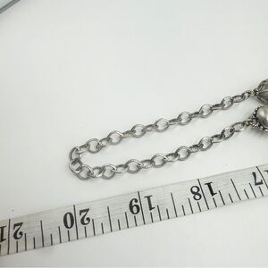 The Chico’s Long Elegant Silver Chain Necklace features oversized clear beads on a polished silver-tone chain. Lightweight yet bold, this versatile statement piece is perfect for layering or wearing solo, adding a touch of sophistication to both casual and dressy outfits.
