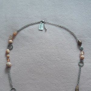 Chico's Necklace, Signed. Silver Tone Chain with Orange/Tan Beads NWT