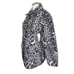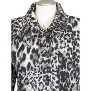 Chicos New Womens Jacket Black Gray Cheetah Quilted Snap Button Coat Size 2P MP