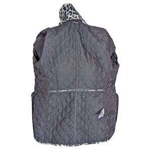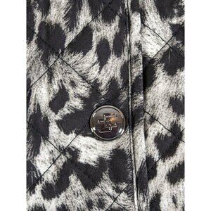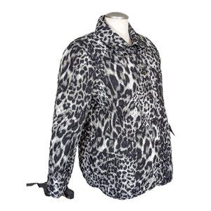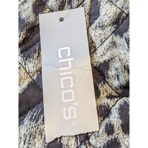 Chicos New Womens Jacket Black Gray Cheetah Quilted Snap Button Coat Size 2P MP