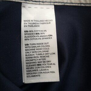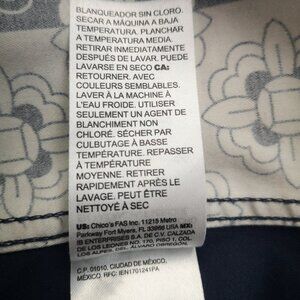 Chico's No Iron Chic Stretch Ladies Size 1 (US - 8) Navy Tan Cream Long Shirt