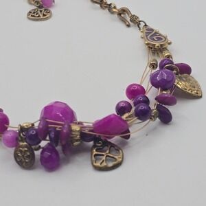 Chicos Purple Beaded Necklace Gold Tone Whimsigoth Boho