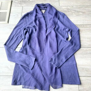 Chico’s Purple Chiffon Collar Open Front Cardigan