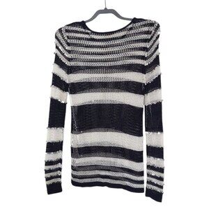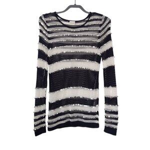 Chico's Striped Nautical Glam Chic Crochet Fisherman Open Knit Sequin Sweater S