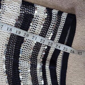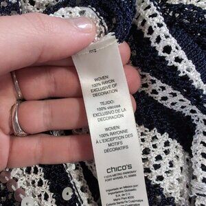 Chico's Striped Nautical Glam Chic Crochet Fisherman Open Knit Sequin Sweater S