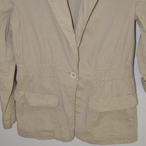 Chico's Tan Khaki Safari Blazer Linen Blend Stretch Pockets Womens Size 0