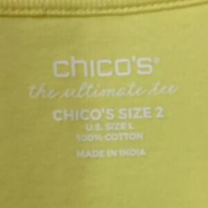 Chicos The Ultimate Tee 100% Cotton Size 2 large) Yellow Comfort Casual Vibrant