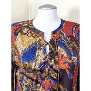 Chicos Top Blouse Womens Size M 8 Petite Multicolor Paisley Floral Lace Up Front