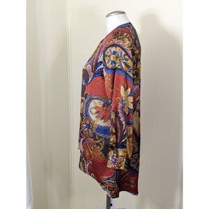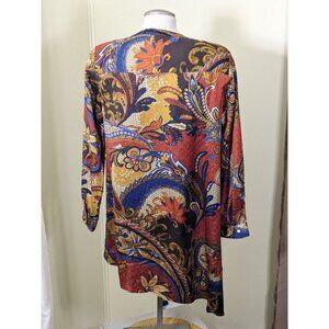Chicos Womens Top Size 1 Medium 8 Petite Multicolor Paisley Floral Sexy Lace Up Front Boho Artsy Asymmetrical Layered Hemline Longline
