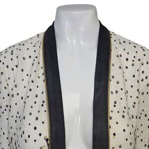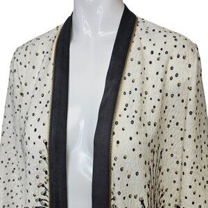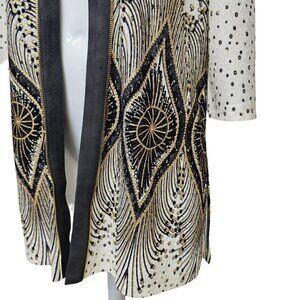 Chicos Travelers Collection Peacock Feather Foiled 3/4 Sleeve Cardigan Size S