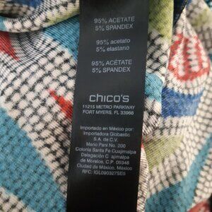 Chico's Travelers Midi Dress in size small features a colorful mosaic print design in a sheath style. Made of stretchy Spandex and Acetate materials, this pullover dress has a half sleeve and falls to a midi length. Perfect for travel, parties, casual outings, or business events, this dress is a versatile addition to your wardrobe.