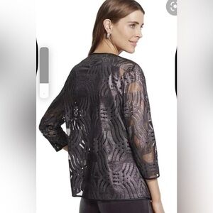 Chico's Traveller’s Cardigan Women’s SZ 2 (large) Deco Lace Silver Black Holiday