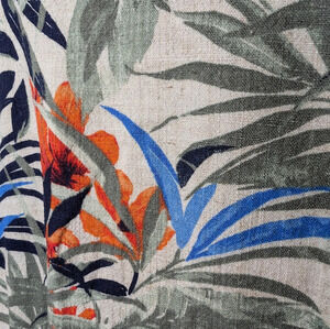 Chico's Tropical Print Linen Blend Short Sleeve Collared Open Neck Top Size L 2