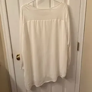 Chicos tunic with long sleeves and a regular hem. Both front and back are lined. Fabric is 100% rayon.