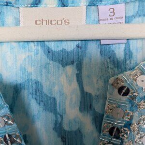 This tunic has not been worn. EUC. One of the beads along the neckline is loose, but not noticeable. The beading goes around the back of the neck, not just on the front. Fabric is sheer.