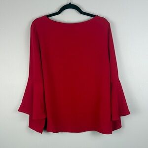 Chico's blouse in a striking red. Features elegant flare sleeves. Perfect for adding flair to any outfit.