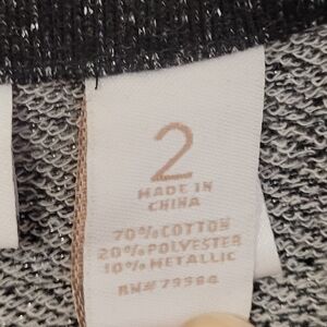 Chico's Weekend black silver metallic crewneck with zipper detail 3/4 sleeve top size 2 equivalent to size 12 large